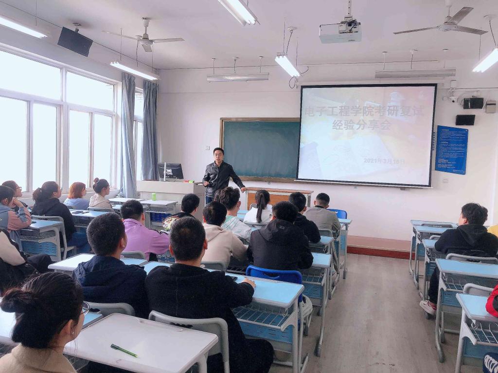 会上,郝杰对2020届两位同学回校作经验分享表示欢迎,对2021届取得的初试成绩的同学表示祝贺,并针对2021年的考研初试成绩、国家政策及考研形势进行了分析。他勉励同学们,要借鉴好、学习好考研成功人的经验与方法,要保持顽强的意志、永不放弃的心态,一鼓作气取得考研复试的最后胜利。