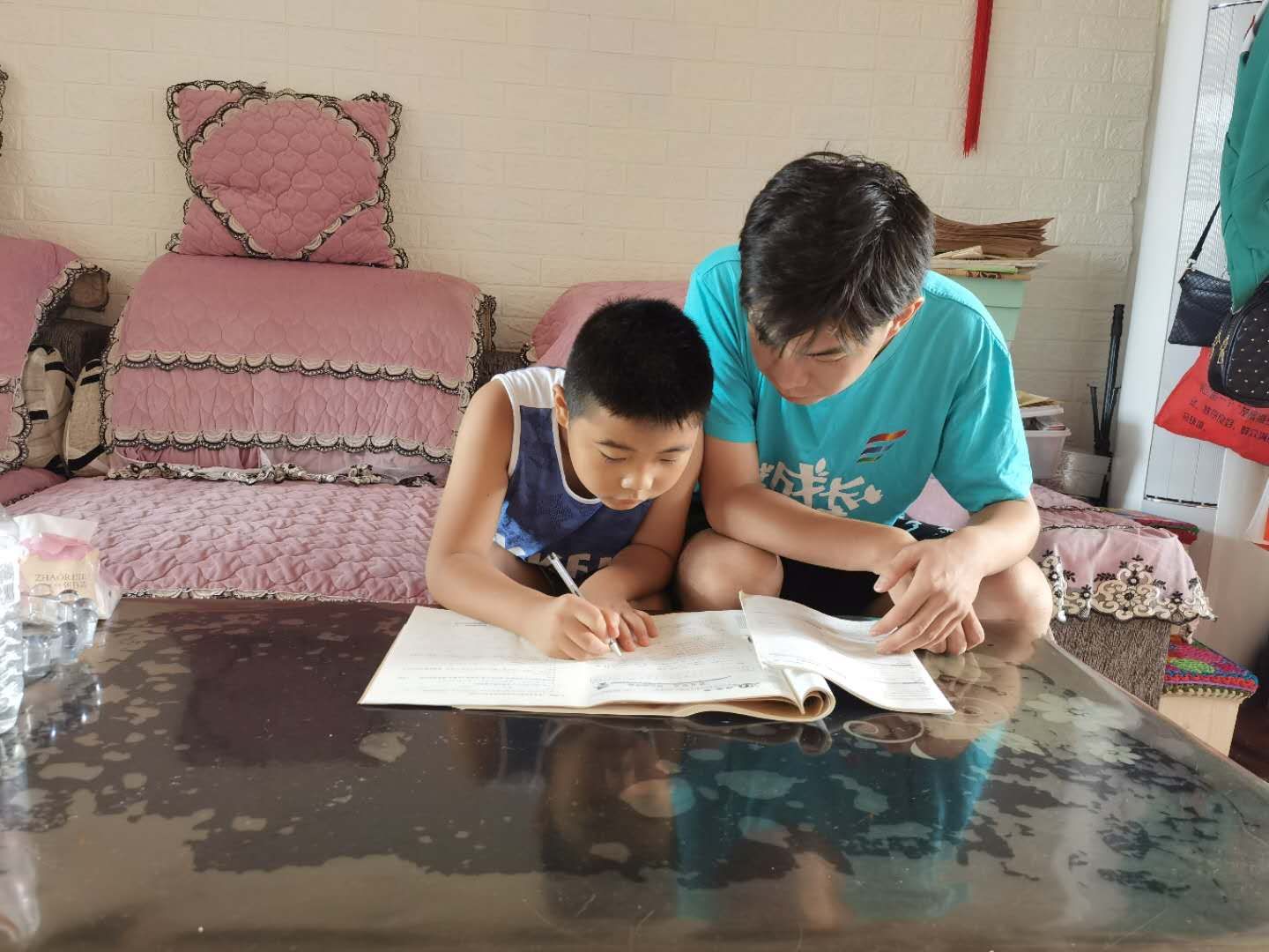同样的,身处榆林市绥德县新五村的实践队员刘智强同学,他在考上大学之后返回家乡,深觉家乡的留守儿童学习上存在很大问题,他每年都利用暑假时间给村里的孩子补课,今年同样没有落下。今年暑假,刘智强来到崔佳旭小朋友的家中,崔佳旭小朋友今年上三年级,他的父母外出打工,一年很少回到家中,但是小朋友是一名特别热爱学习的同学。每天早上,刘智强都会来崔佳旭家中为他辅导暑假作业,并且补习上一学期课程中不会的问题,辅导作业的同时,也给了小朋友心灵上极大的安慰。小朋友也表示“自己要好好学习,早点长大,有一份好的工作,爸爸妈妈不用再出门打工,和他们经常呆在一起”。