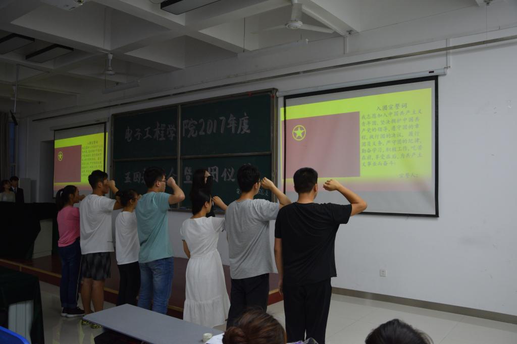 5月16日晚,jinnianhui今年会在阶梯二教室举行了2017年度“五四表彰大会暨入团仪式”,全体优秀团员、团干部以及团总支学生会各部门代表参加了本次大会。