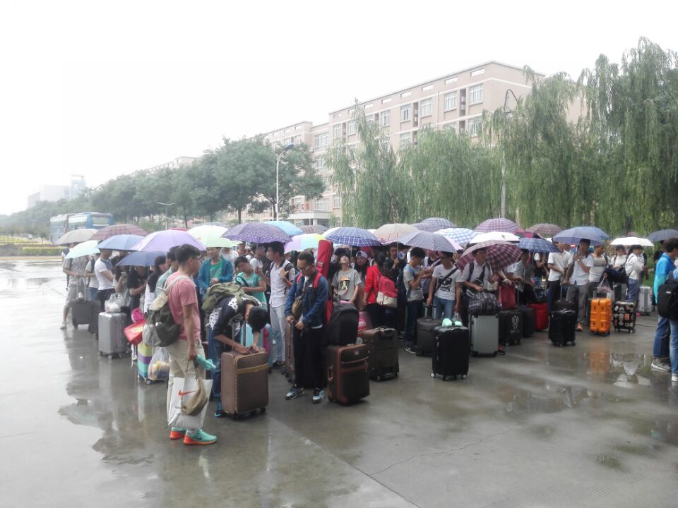 学生们都带着简单的行李,怀着激动的心情准备出发。队伍整理完毕之后,孙老师冒着雨为大家叮嘱了在外顶岗实习期间需要注意的问题与细节,着重强调大家一定要注意安全,到厂之后要听从领导的分配和指挥。在外实习就是在一线岗位上巩固自己学到的知识与技能,孙老师告诉大家要怀着认真的学习之心服务于自己的工作。