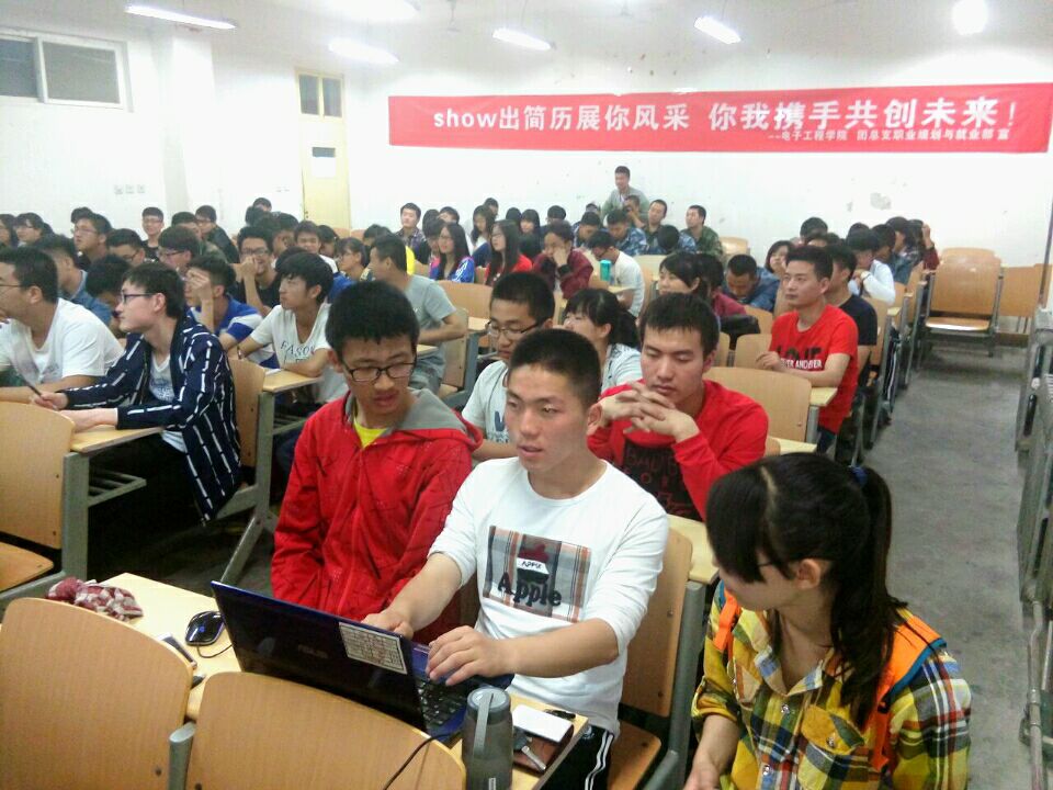 4月26日晚上19:00,在阎教楼1336自习室举行了由jinnianhui今年会职业规划与就业工作部主办的jinnianhui今年会第一届简历大赛。本次大赛邀请到了jinnianhui今年会大三本科辅导员庄思老师,大二专科辅导员张小妹老师,大一士官班教官敬超凡老师,以及大四已经与知名公司签约的田宇、冯雄博等几位学长作为嘉宾评委。jinnianhui今年会大一各班学生代表参加了此次大赛。