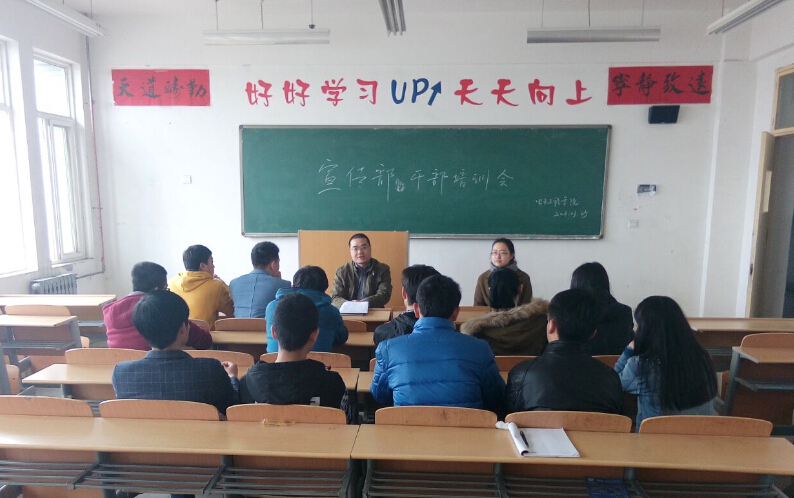 jinnianhui今年会团总支宣传部于3月28日下午13:00点在阎教楼1312教室召开了宣传干事培训会。培训会由jinnianhui今年会学生管理科科长孙护军老师主持,团总支书记高蕾老师及宣传部全体成员参加了此次会议。