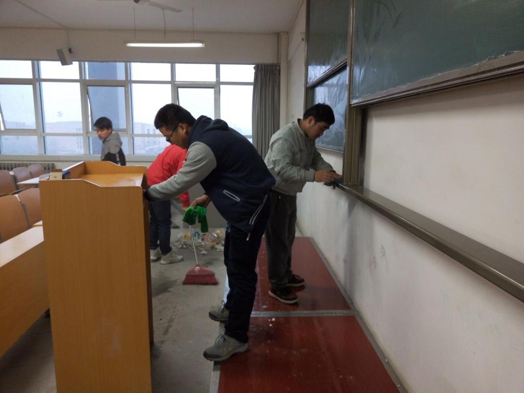 3月16日,自动化专业的35名同学对1320、1322、1324、1326、1336五个公共教室进行了打扫,经过学生的辛勤打扫,教室恢复了往日的明亮和干净整洁。
