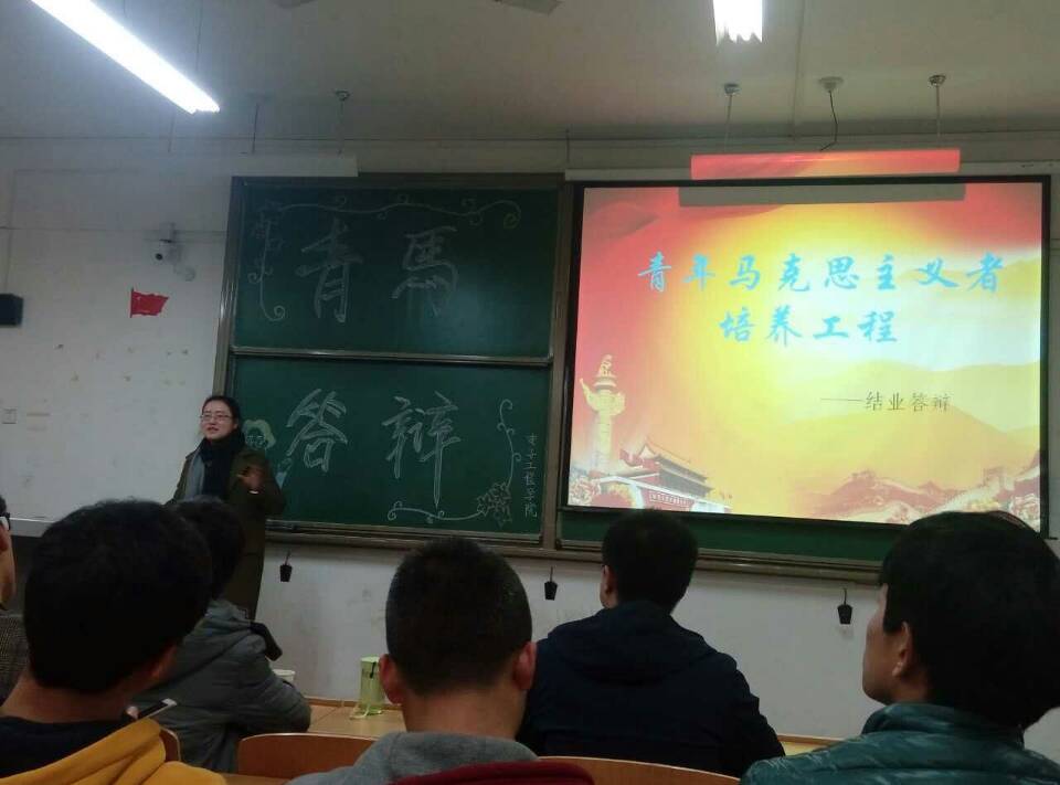 3月14日晚上7点整,由社会实践部主办的jinnianhui今年会2015-2016年度“青年马克思主义课结业暨假期社会实践”评优答辩大会在阎教楼1336教室成功举行。出席此次大会的嘉宾有jinnianhui今年会团总支书记高蕾老师,团总支副书记徐家宏,学生会副主席冯明辉,心灵驿站站长袁帅,以及团总支各部门部长。田淑君,王轩等五名答辩者以及全体青马学员参加了此次答辩。