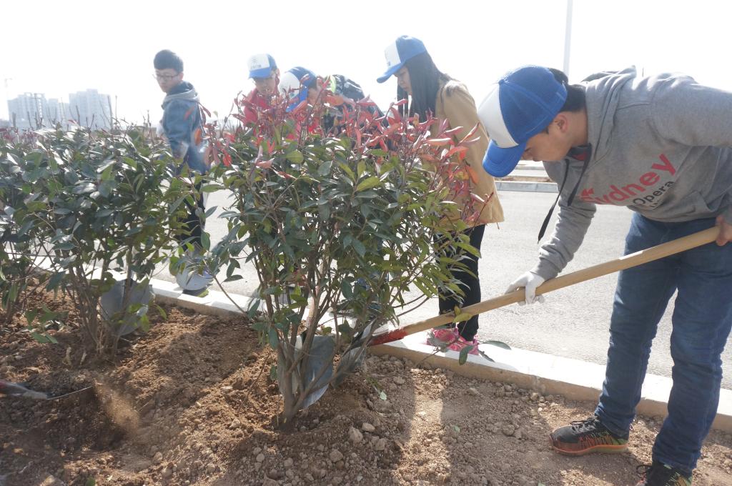 311日早上九点四十五分所有人在校车旁边集合,统一乘坐校车去往阎良区飞豹路植树场地进行植树,尽管早上的天气并不好,但同学们的植树的热情依然有增不减。在孙老师的带领下,同学们明确分工,迅速的加入到植树队伍中,大家手持铁锹,干劲十足,将一棵棵树木种植在飞豹路的路旁,植树现场气氛浓烈。看着大家那份对绿色的爱护,着实令人感动。