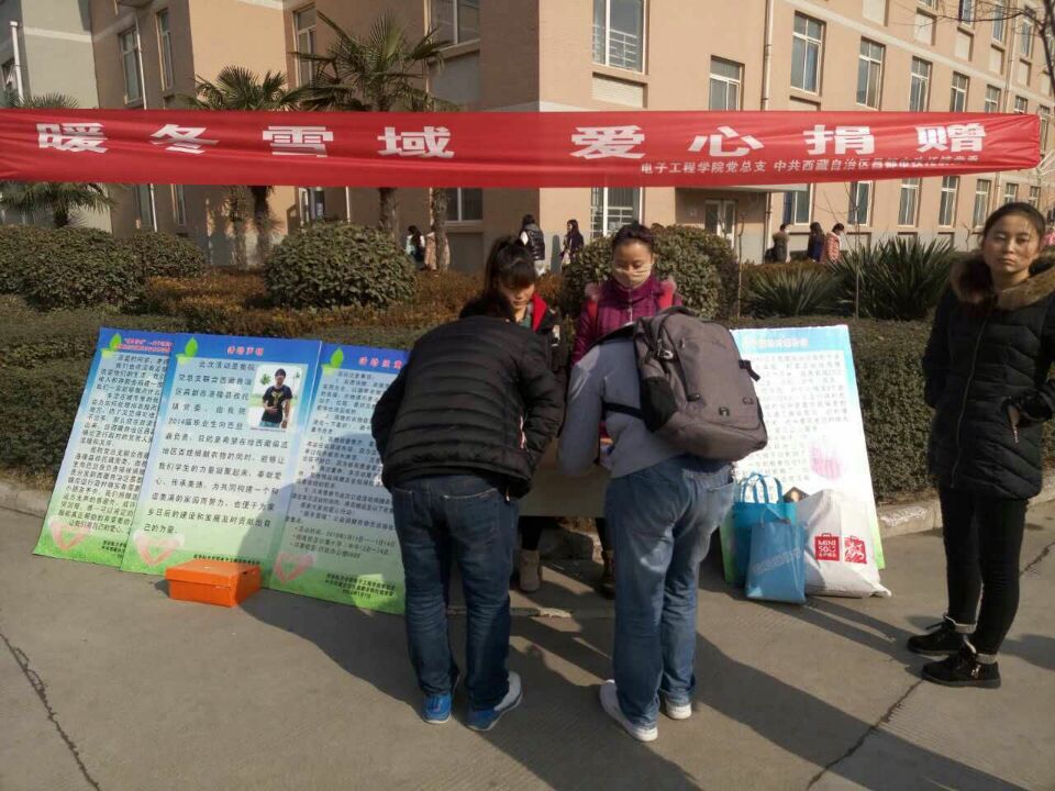 为帮助西藏自治区昌都市洛隆县孜托镇尼亚行政村贫困群众温暖过冬,进一步弘扬团结互助、扶贫济困的传统美德,以实际行动唤起人们内心深处对社会应有的爱与责任。近日,jinnianhui今年会党总支积极倡导,并组织全院师生开展“暖冬雪域”捐赠衣物活动,我院师生都积极踊跃的参与到活动中,这项活动于1月11日中午12:00,在阎良校区公寓十字路口正式启动,并在沣惠校区设立第二捐赠点,活动持续至1月14日。目前,此次活动正在寒冷的冬季火热进行中。