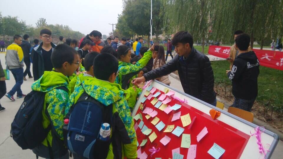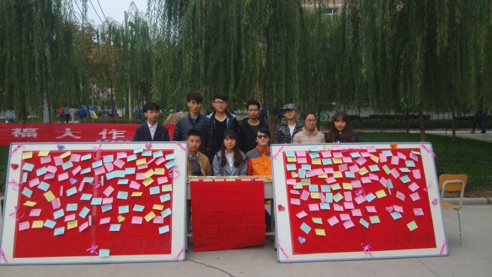 本次活动的组织者心灵驿站站长与成员袁帅、陈轲、刘运运、田娇娇、杨华都热情饱满,干劲十足,积极号召同学们参与活动,留下自己笔迹下的美好祝福。在场的同学们均踊跃参加,用自己的一笔一画,认真的写出了自己最美的祝福。前来今年会参观学习的北京第八中学生们也加入了此次爱的祝福活动。活动现场洋溢着满满的温馨之情。