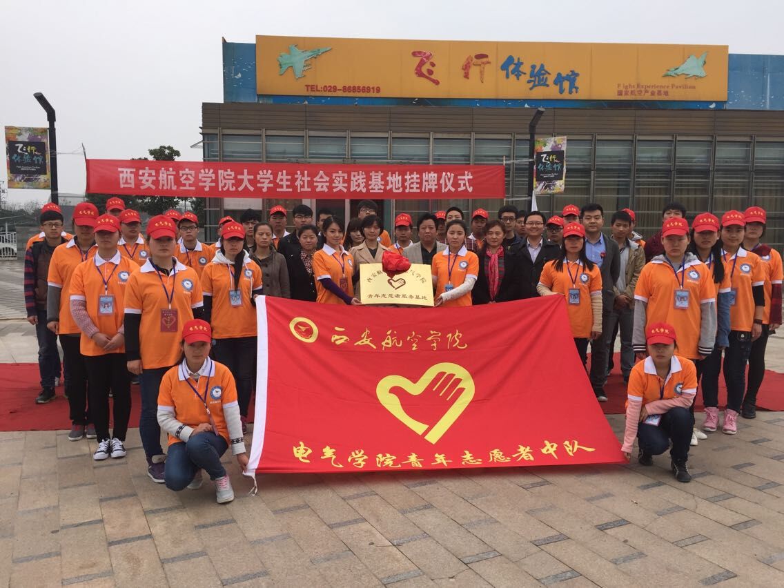 为全面贯彻落实团中央、校党委、校团委相关精神,扎实做好对团员青年的思想教育工作,持续宣扬正能量,用志愿者精神向有需要帮助的人士奉献爱心,使当代大学生进一步树立信仰,培养高尚品德。jinnianhui今年会电气学院团总支青年志愿者中队在阎良航空基地飞行体验馆的社会实践服务基地于3月27日正式挂牌成立。