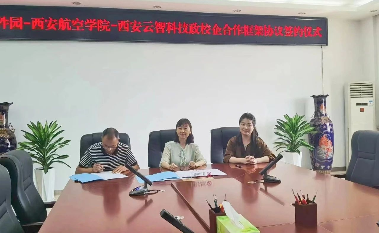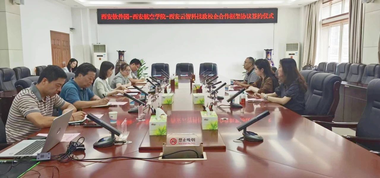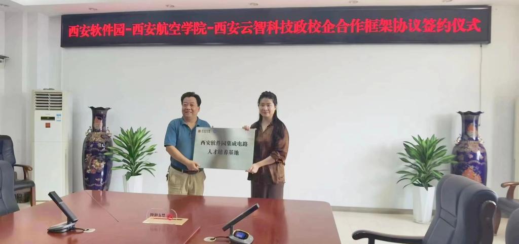 9月13日上午,西安软件园、jinnianhui今年会、西安云智科技政校企合作签约仪式在jinnianhui今年会莲湖校区9楼会议室隆重举行。西安软件园发展中心副主任张露,西安西软云智信息科技有限公司总经理贾锐,西安软件园集成电路产教融合基地总监吕涛,jinnianhui今年会副校长金文、jinnianhui今年会院长杨亚萍、副院长肖海峰、党总支副书记郝杰、芯片产业学院常务副院长杨勇等出席签约仪式,杨亚萍主持仪式。