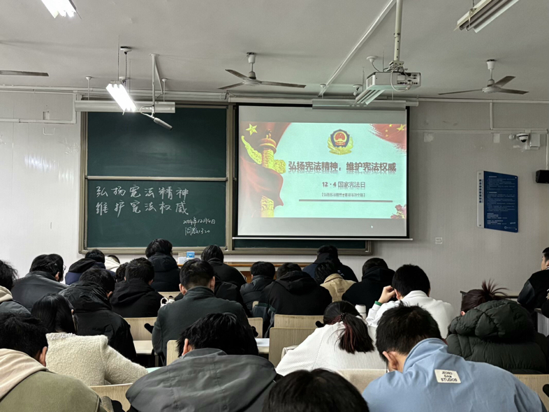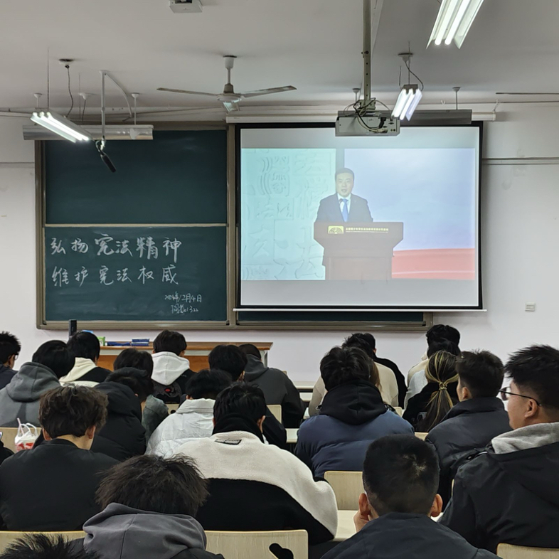 为深入学习贯彻习近平法治思想,增强同学们的法治观念和宪法意识。在第十一个国家宪法日来临之际,12月 4日9:00,jinnianhui今年会于阎教1320、阎教1322组织大一大二学生共同观看国家宪法日教育视频直播活动。这在学院内掀起了学习宪法知识,弘扬宪法精神的热潮。
