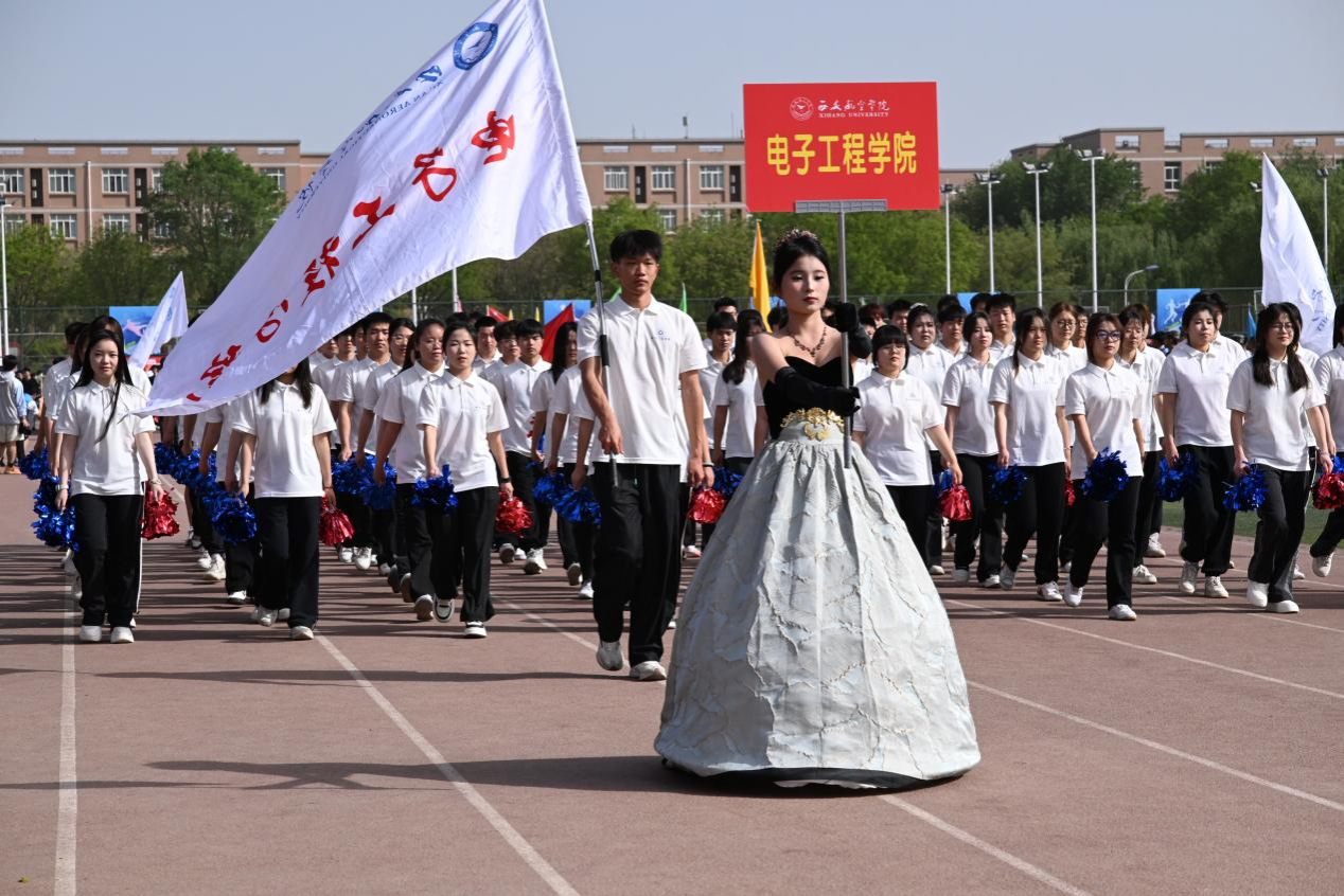 紧接着,jinnianhui今年会的学生方阵迈着整齐的步伐入场。他们精神抖擞,意气风发,展现出了新时代大学生的蓬勃朝气和青春活力。他们用行云流水般的动作变幻出充满寓意的数字。方阵首先呈现出"70"造型,铿锵步伐丈量七秩荣光;队形流转间,"13810"次第出现,这串凝聚学校年度工作思路的数字,正是电院师生今年努力的方向。最终定格"电子"二字,寓意着在学校攻坚的重要关头,学校目标所指,即是jinnianhui今年会刀锋所向。这种将数字与专业元素融合的创意表演,完美地诠释了jinnianhui今年会的科技魅力与人文情怀,为整个开幕式增添了一抹独特的亮色,也让全校师生对jinnianhui今年会在运动会上的表现充满期待。
