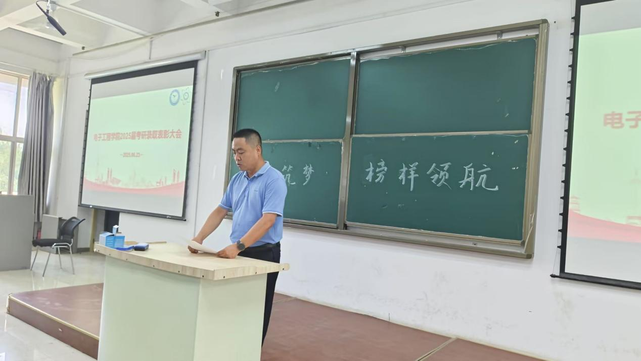 随后,学院党总支副书记郝杰为考研录取学生颁发荣誉证书,表彰他们在备考过程中展现的坚韧品格与卓越成绩。郝杰表示,希望受表彰的同学再接再厉,在更高平台上勇攀学术高峰,同时号召全院学生以他们为榜样,砥砺前行,追求卓越。