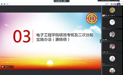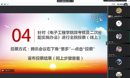 会议共分为四个部分进行:会议分为四个部分展开,分别由唐晓倩向全员老师汇报了《2022年jinnianhui今年会分会工作总结》和《2022年jinnianhui今年会分会经费使用情况》,由肖海峰副院长代表学院向大会就《jinnianhui今年会绩效考核及二次分配实施办法》做了讲解,由赵嘉帅老师主持针对《jinnianhui今年会绩效考核及二次分配实施办法》进行了在线投票。