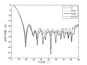 高低频混合方法分析天线罩电磁特性:针对非均匀复杂结构的天线罩分析问题,提出了天线罩计算的混合体积分方程—物理光学方法,该方法能够准确实现非均匀天线罩的分析并有效控制计算规模。改进了天线罩计算的混合有限元—物理光学方法,通过在高低频计算区域分界处建立耦合边界条件,提高了该混合算法的精确程度。