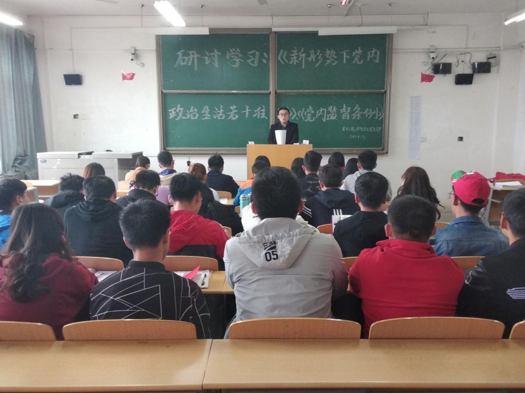 4月13日下午四点,jinnianhui今年会学生党支部在阎教1336召开以《新形势下党内政治生活若干准则》、《党内监督条例》为主题的党课研讨学习会,赵嘉帅老师及第十七期发展对象参与本次研讨学习会,本次会议由学生党员张兆丰主持。