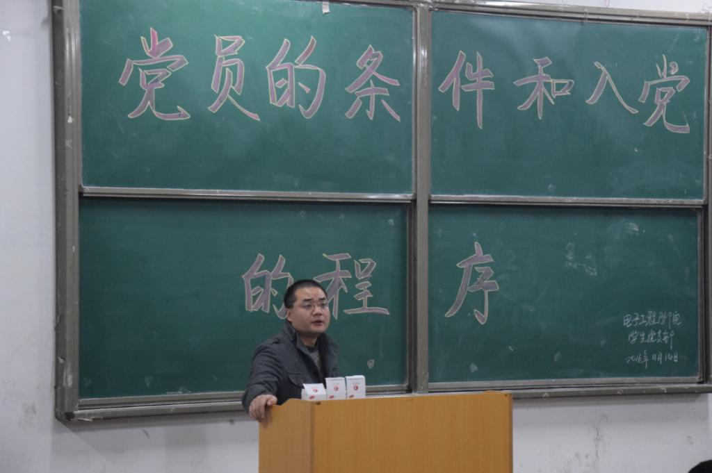 11月14日,为使大一新生了解共产党的性质以及入党的章程,jinnianhui今年会在阶梯五教室召开了以“党员的条件和入党的程序”的党课活动。本次党课的主讲人为jinnianhui今年会学生党支部书记孙护军。