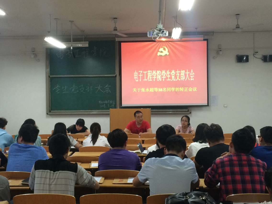 2016年5月19日晚7点,jinnianhui今年会jinnianhui今年会学生党支部预备党员转正大会在阎教1320教室召开。jinnianhui今年会学生党支部书记孙护军老师、史珊珊老师、张小妹老师和jinnianhui今年会学生党支部预备党员张继等38名同学参加了此次会议,会议由孙护军老师主持召开。