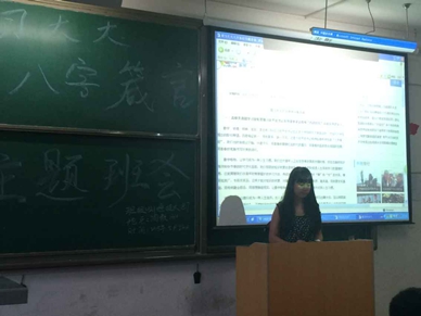 2015年5月24日,电气学院测控技术1817团支部在阎教1336举办“习大大八字真言”学习教育主题班会,班会上在团支书朱乐、组织委员秦蕾和宣传委员何梦琪共同配合下,首先向同学们传达了“习大大八字真言”--勤学、修德、明辨、笃实的主体思想,其次以观看《当幸福来敲门》励志电影的形式,使同学们在主人公克里斯身上更深刻地了解主体思想在社会中实用性,从而加强自身建设意识,以达到提高自身能力的目的。