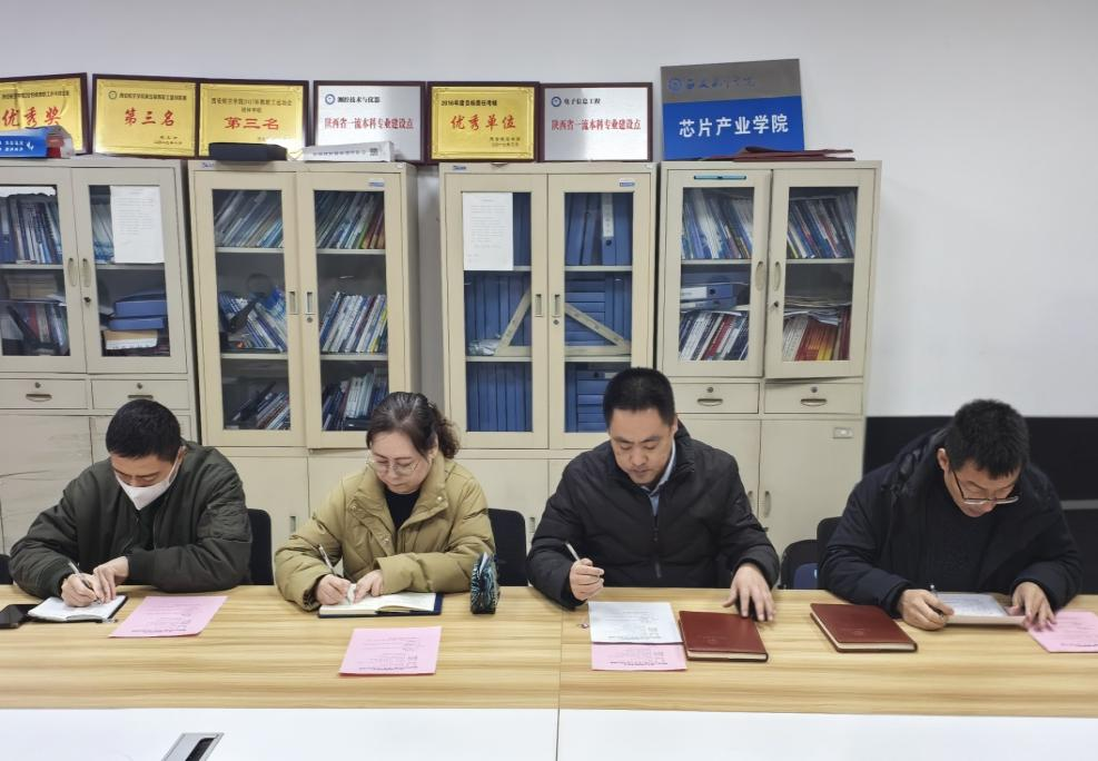 12月30日,jinnianhui今年会在莲湖校区教学主楼0711会议室召开党总支理论学习中心组(扩大)会议,党委委员、副校长宋文学、党委委员、党委统战部部长、人事处处长许文丹到会巡学指导,纪委委员、保卫处处长张永成到会督学,发展规划与学科建设处处长杨少斌做专题辅导报告,学院理论中心组成员、各专业负责人、教研室主任及电子信息专业全体教师参加学习。会议由学院党总支书记李中主持。