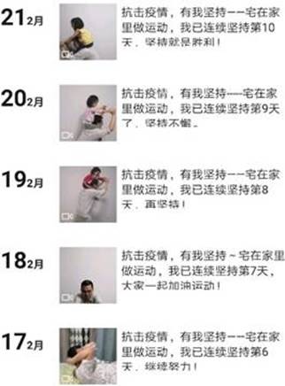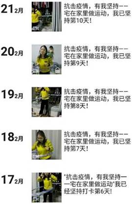 为了响应学校工会“抗击疫情,有我坚持——宅在家里做运动”十天打卡活动,jinnianhui今年会全院教职工纷纷积极参与到活动当中,继续在家“动起来”。