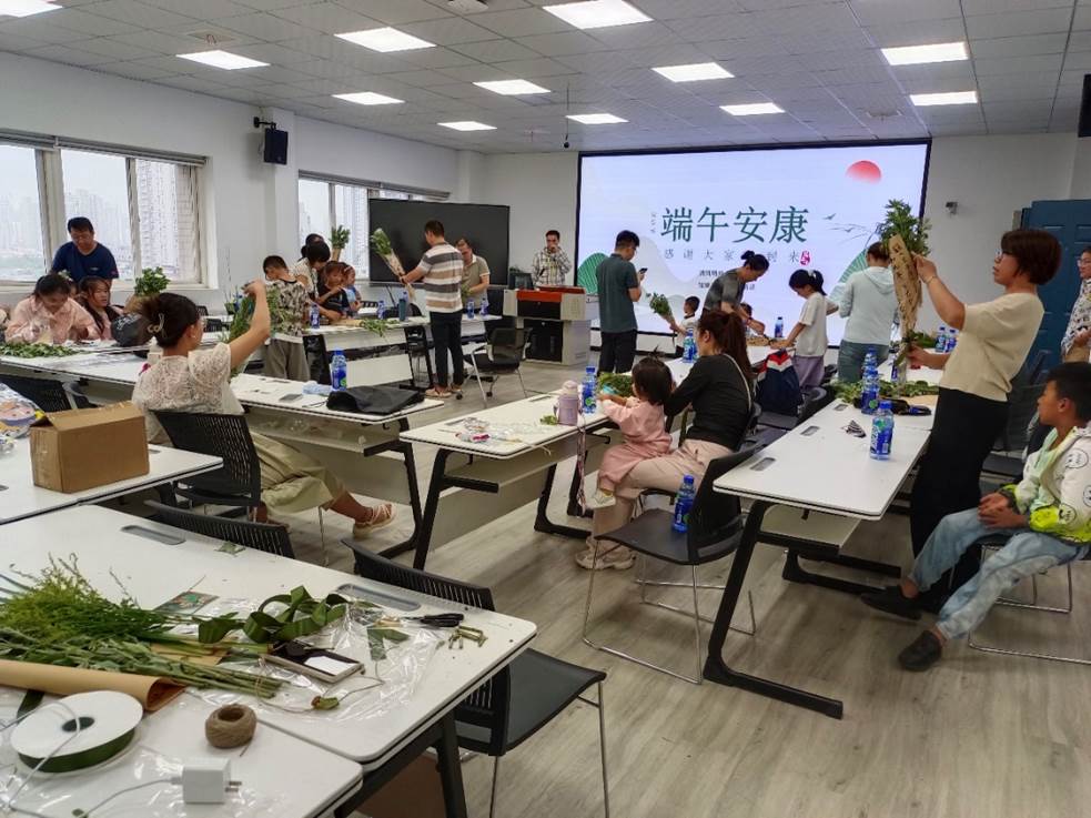 活动开始前,首先为孩子们介绍了端午节的由来及端午节传统文化。之后,家长与孩子一起制作传统艾草香囊和艾草菖蒲花束。最后是互动游戏环节,在欢声笑语中活动达到了高潮。