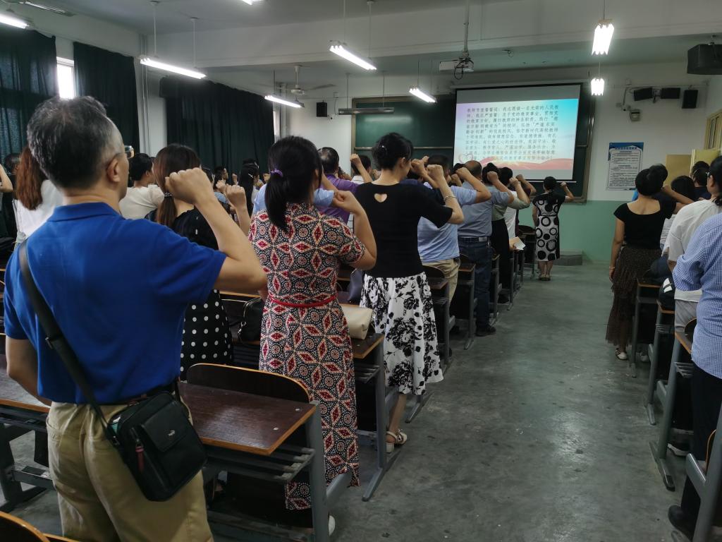 为庆祝第37个教师节,9月10日下午,jinnianhui今年会组织全体教师进行宣誓活动,由党总支书记侯睿带领大家宣誓。