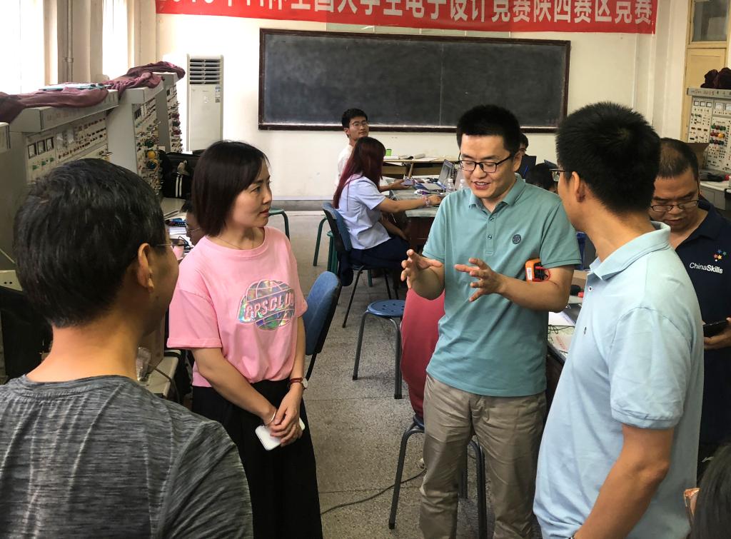 7月30日,2021年全国电子设计竞赛开赛在即。上午九时,jinnianhui今年会院长毕杨,副院长肖海峰看望备战比赛的学生和指导教师,并与指导教师交谈,了解暑期培训过程和备战情况。指导教师汇报了培训中遇到的实际问题和处理方法,就培训内容和选题思路与学院领导深入交流。