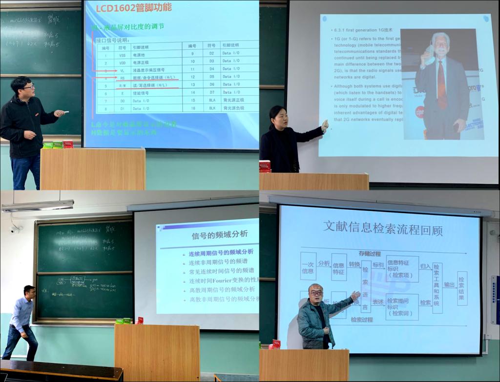 本次活动分为1组和2组同时举行,每位教师进行5分钟说课和25分钟正式授课。小组成员从教学设计组织、教学内容安排、PPT和板书设计等方面为授课教师提出意见和建议。