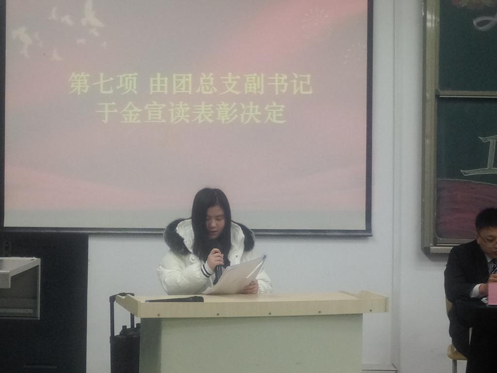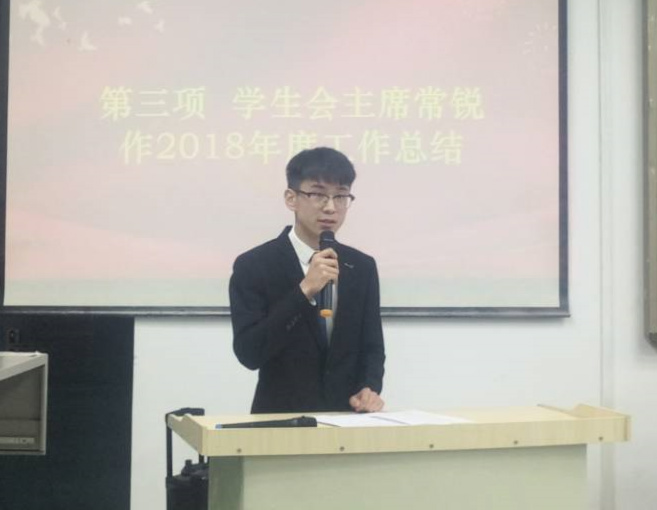 会中,于金宣读了对各部门的获奖代表的表彰与奖励。宋程浩作为获奖代表进行了发言,结合自己的工作实际,向同学们分享自己的经验。随后,肖静对获奖学生表示祝贺,并十分认可各部门的工作,对各部门未来的工作做出了期待,并希望大家齐心协力,尽职尽责,使学院团学工作取得更大的进步。