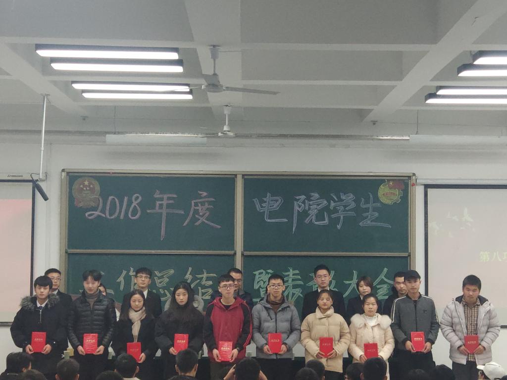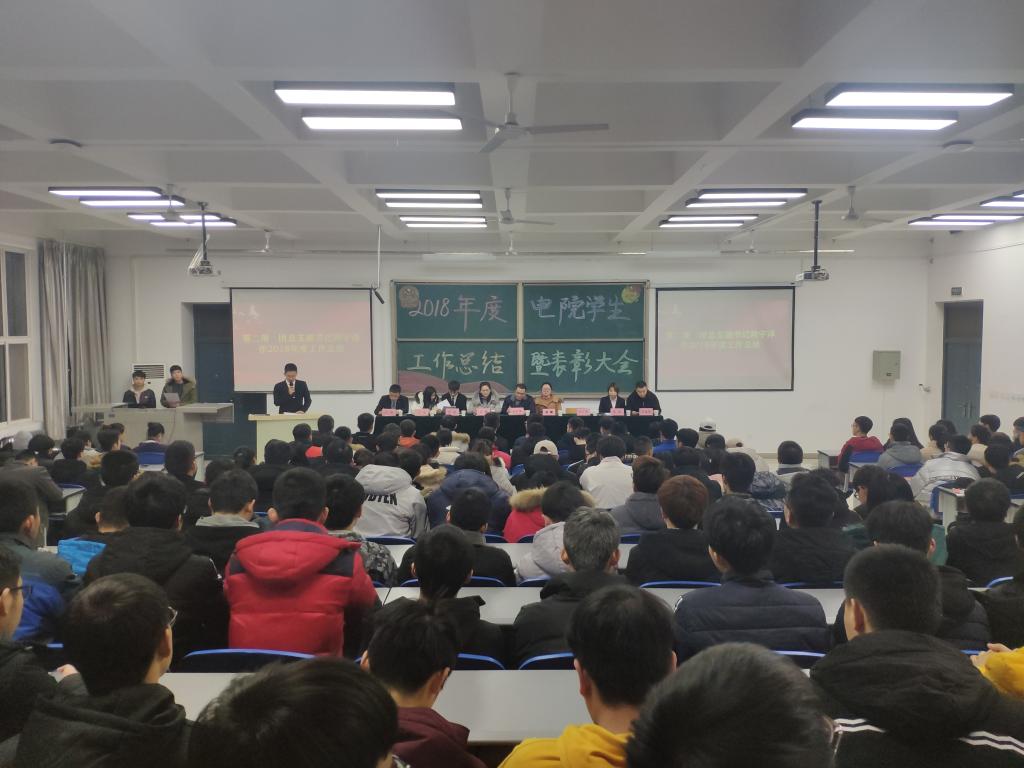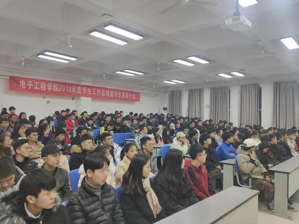 年末将至,jinnianhui今年会一学年的团学工作接近尾声。2018年1月9日晚七点,jinnianhui今年会在阶梯二教室举行了“电子工程学院2018年度学生工作总结暨表彰大会”,学生管理科科长孙护军,团总支书记肖静,党支部宣传委员高蕾,团总支副书记阴宇泽、于金,学生会主席常锐,心灵驿站站长侯敏,团学工作监察委员会主席白泽,易班工作站站长焦鑫甜,团学干部以及各类奖项获奖代表参加了此次会议。