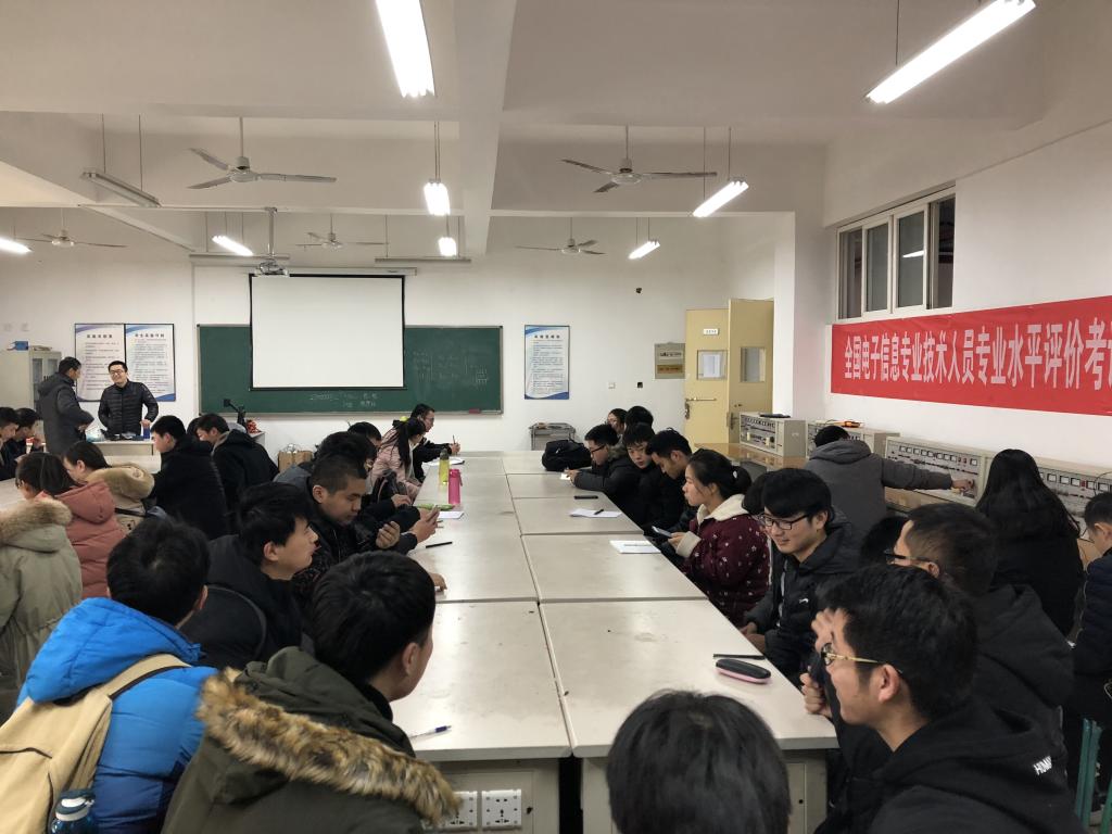 首先,竞赛负责人姚伟鹏老师强调了比赛的流程,并现场安排测评教室和实验室台位。专家组组长刘雨棣强调,要严格考评,细心打分,做好首届大学生电子设计竞赛的作品测评。