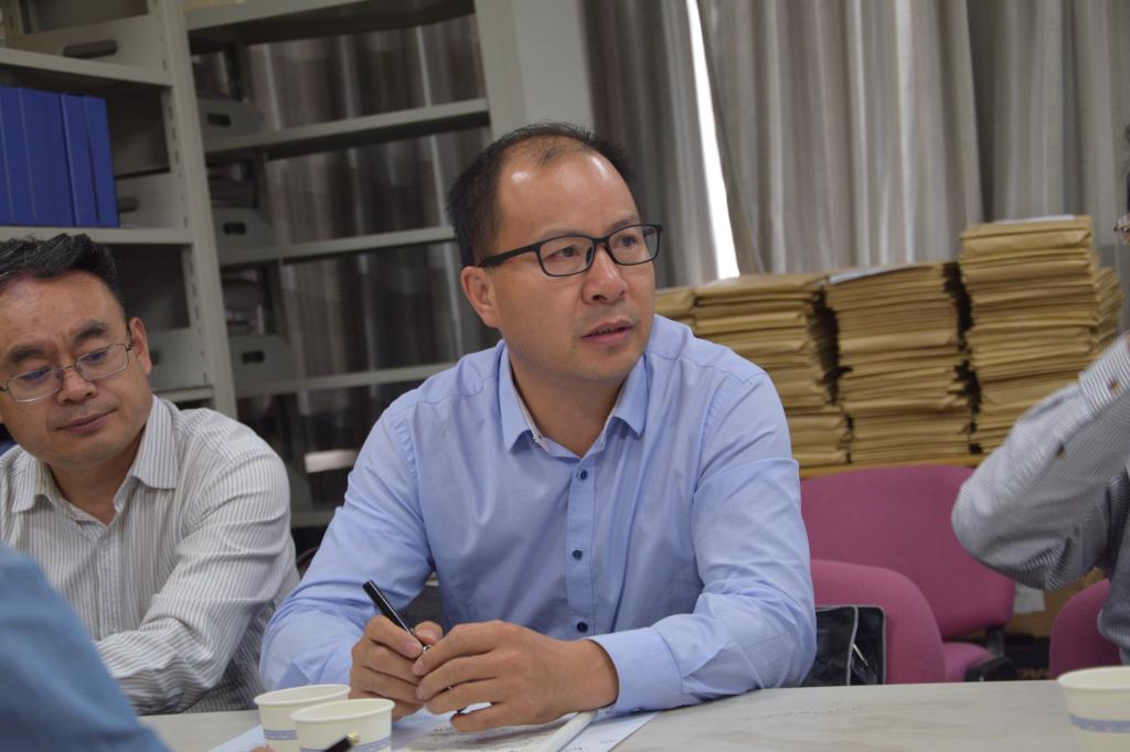 杨勇首先汇报了学院发展建设思路,详细汇报学院在专业建设、师资队伍、科学研究、学生工作等方面的工作规划,并就暑期评建工作的完成情况和存在不足进行说明。