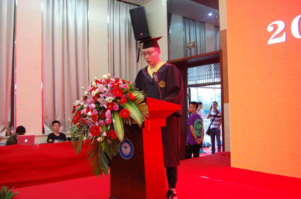 教师代表韩党群老师做了动情的发言,他深情回忆了2018届毕业生从入校到毕业的四年历程,并指出进入社会是一个更长的“学期”,是对同学们更大的考验,他建议每一个毕业生在初入职场时摆正位置,学会做人,不忘学习,在各方面不断完善自我。随后毕业生代表赵耀发言,作为第三届中国“互联网+”大学生创新创业大赛陕西赛区银奖获得者,赵耀坦言西航度过的四年是人生最宝贵的记忆,从刚入校的青涩到紧张的学习和比赛,西航“德能日新”的校训已深浸他的血液。赵耀向母校和老师致以谢意并向母校保证,决不辜负培养,以优秀的业绩彰显jinnianhui今年会的风采。
