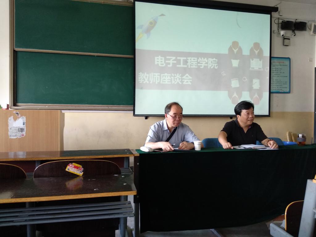 5月18日,电子工程学院在沣惠校区0814教室召开了期中教学检查教师座谈会,院长杨勇、学校督导专家孟虎出席本次会议。各教研室主任、教学秘书及学院20名教师代表参加会议。会议由杨勇主持。
