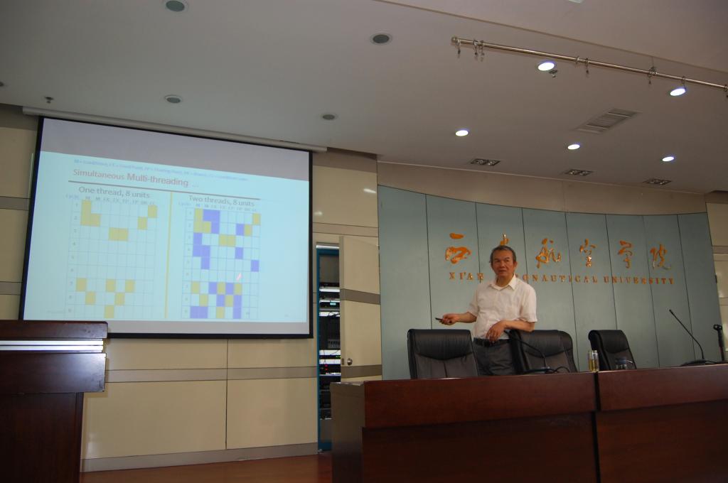 同日下午,Han-Way Huang教授在沣惠校区图书馆报告厅以《计算机处理器性能提升技术》为题,用英语为今年会100余名师生带来了一场关于计算机处理器的精彩报告。报告结束后,与会教师和学生与Han-WayHuang教授进行了互动交流。杨勇在总结发言中对青年教师和学生提出了殷切期望,希望大家紧跟行业技术现状,主动与国际接轨。