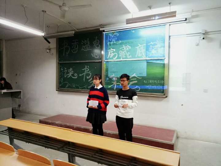 此次活动主要是学生干部的读书分享。每位同学就自己所阅读的书籍进行介绍,然后就其中的热点问题提出自己的观点或者疑问,供给大家进行讨论交流。首先由主席团冯明辉就他读的《人性的弱点》这本书向大家分享他的读书心得,他告诉大家做自己,不要在意别人对自己的看法。接下来各部门干部依次向大家介绍并分享他们的读书心得。原本只阅读一本书的同学经过此次读书分享学习到了很多对他们有益的知识,开拓了他们的视野,丰富了知识。
