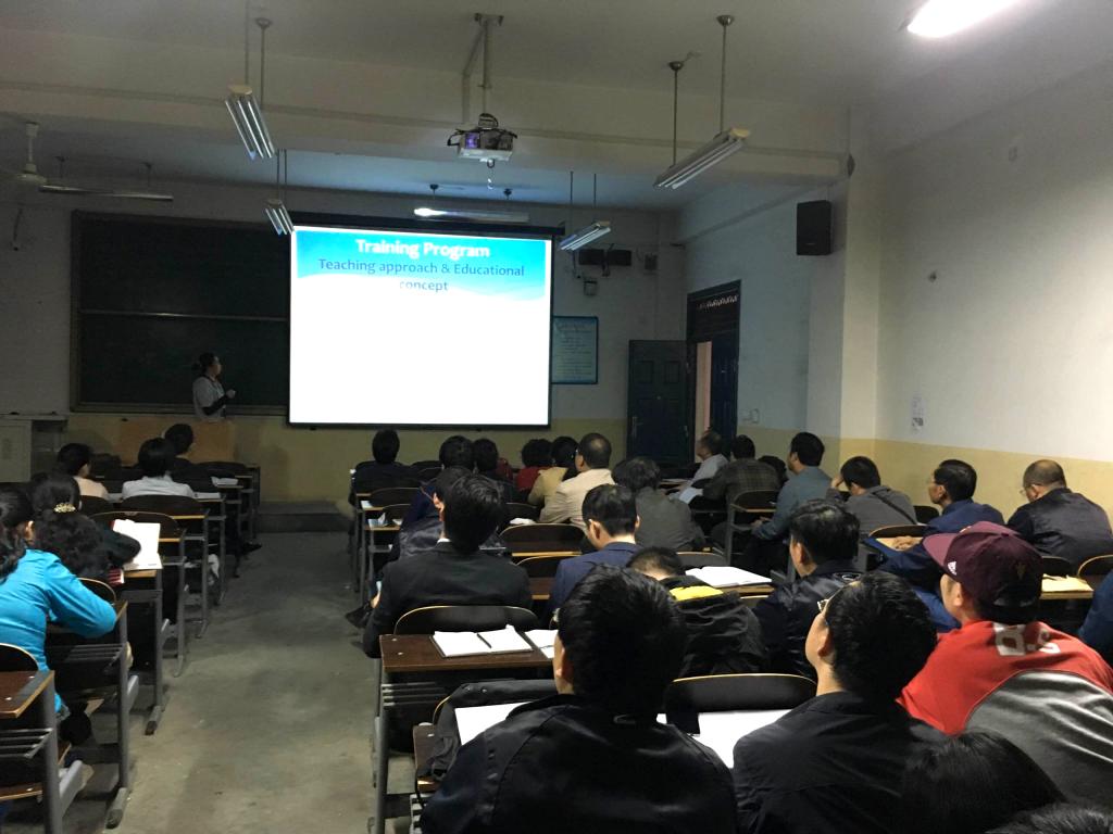 随后,访问团成员储海燕老师具体介绍了明尼苏达大学中国中心为本次培训安排的十五场专题讲座,内容涵盖美国高等教育体系介绍,通识教育的概念、背景及其与职业教育的结合,以学生为中心的课堂形式,课堂设置之情景因素与学习目标,有效学习小组,评分规则和以翻转课堂、慕课为代表的现代教育技术。
