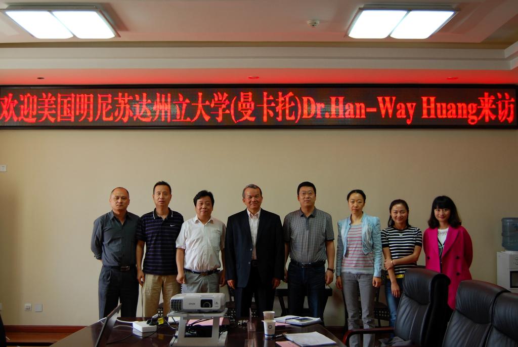 5月9日上午,美国明尼苏达州立大学(曼卡托)Han-Way Huang教授访问今年会。今年会国际合作与交流处处长蔡应昌、jinnianhui今年会院长杨勇、副院长张军、国家级教学名师刘雨棣教授等与来宾座谈。会议由蔡应昌主持。
