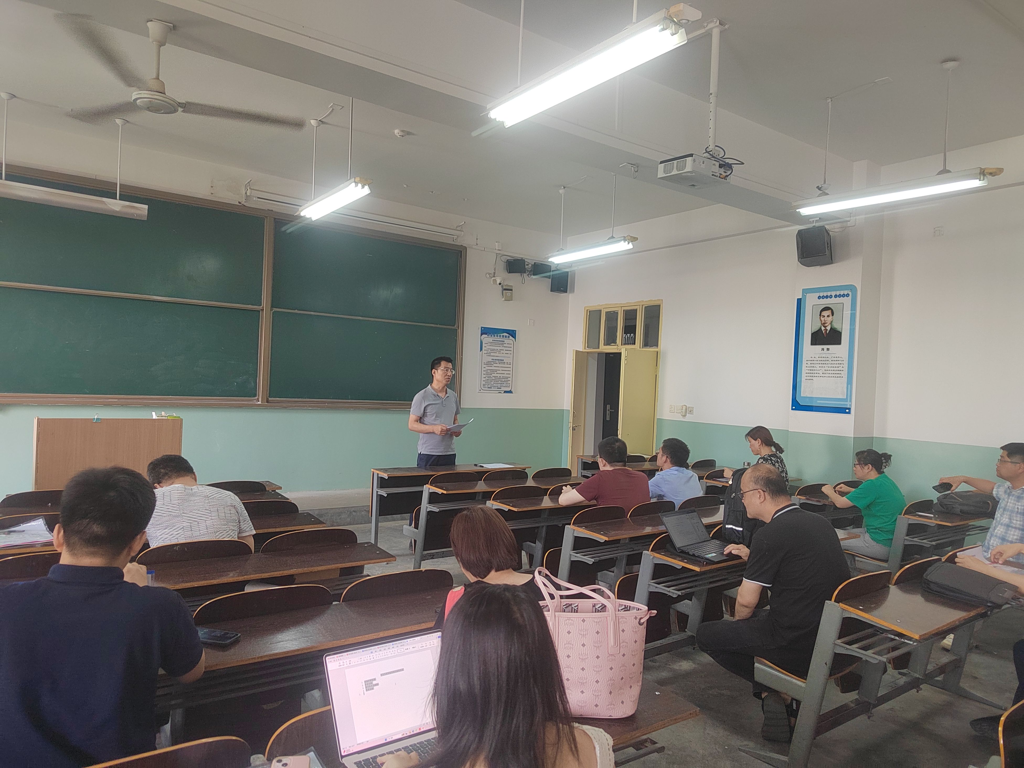 6月13日下午四点,jinnianhui今年会在莲湖校区0708教室召开开展教育教学规范化管理专项行动集体学习暨四六级考试考务培训会,会议有教学副院长肖海峰主持,全体教师参加会议。