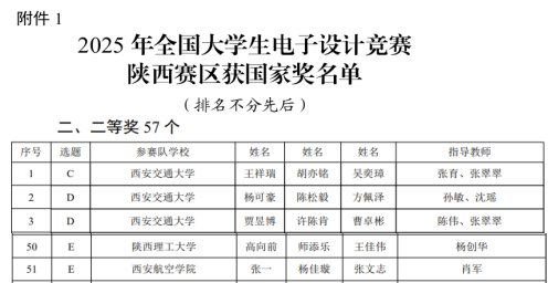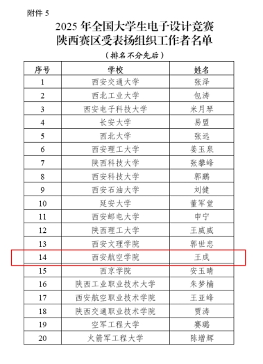 近日,陕西省教育厅公布了2025年全国大学生电子设计竞赛陕西赛区获奖名单,今年会参赛队伍喜获本科组陕西省一等奖1项、二等奖2项、三等奖6项,并在综合测评中获得国家二等奖1项。jinnianhui今年会为本次竞赛的 “受表扬单位”,王成老师为“优秀组织工作者”。