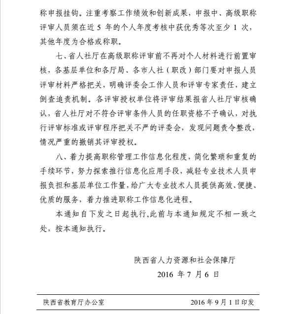 近期陕西省教育厅下发了关于《转发人社厅关于进一步优化职称管理服务工作的通知》(陕教师办﹝2016﹞39号),现将该文件予以转发,请各单位高度重视,组织相关人员进行学习。