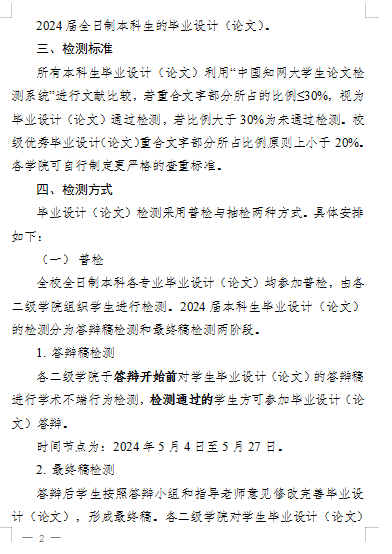 关于开展2024届本科毕业设计(论文)学术不端检测工作的通知