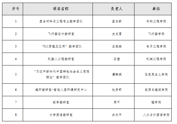 根据《关于开展2024年度校级优秀基层教学组织评选的通知》(西航教通字〔2024〕47号),经学院推荐、专家评审、学校研究等程序,拟确定2024年度校级优秀基层教学组织8项,现予以公示。