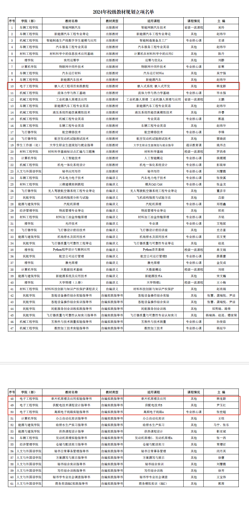 2024年校级教材规划立项名单公示