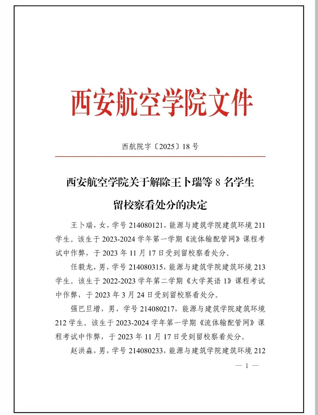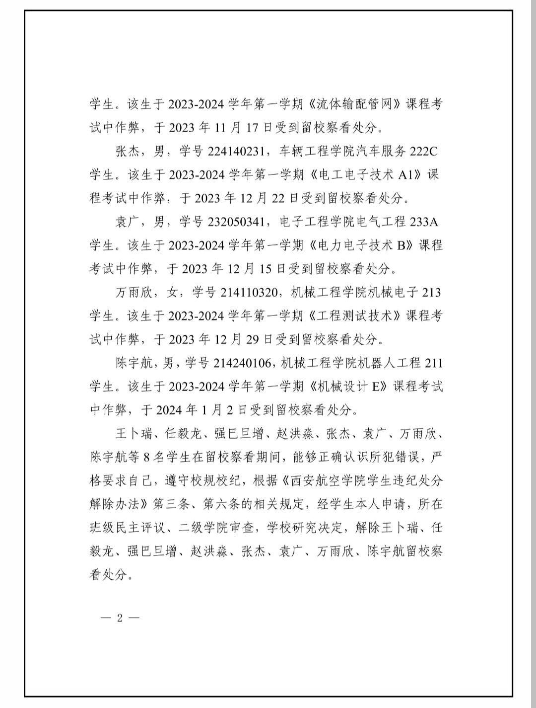 jinnianhui今年会关于解除王卜瑞等8名学生留校察看处分的决定