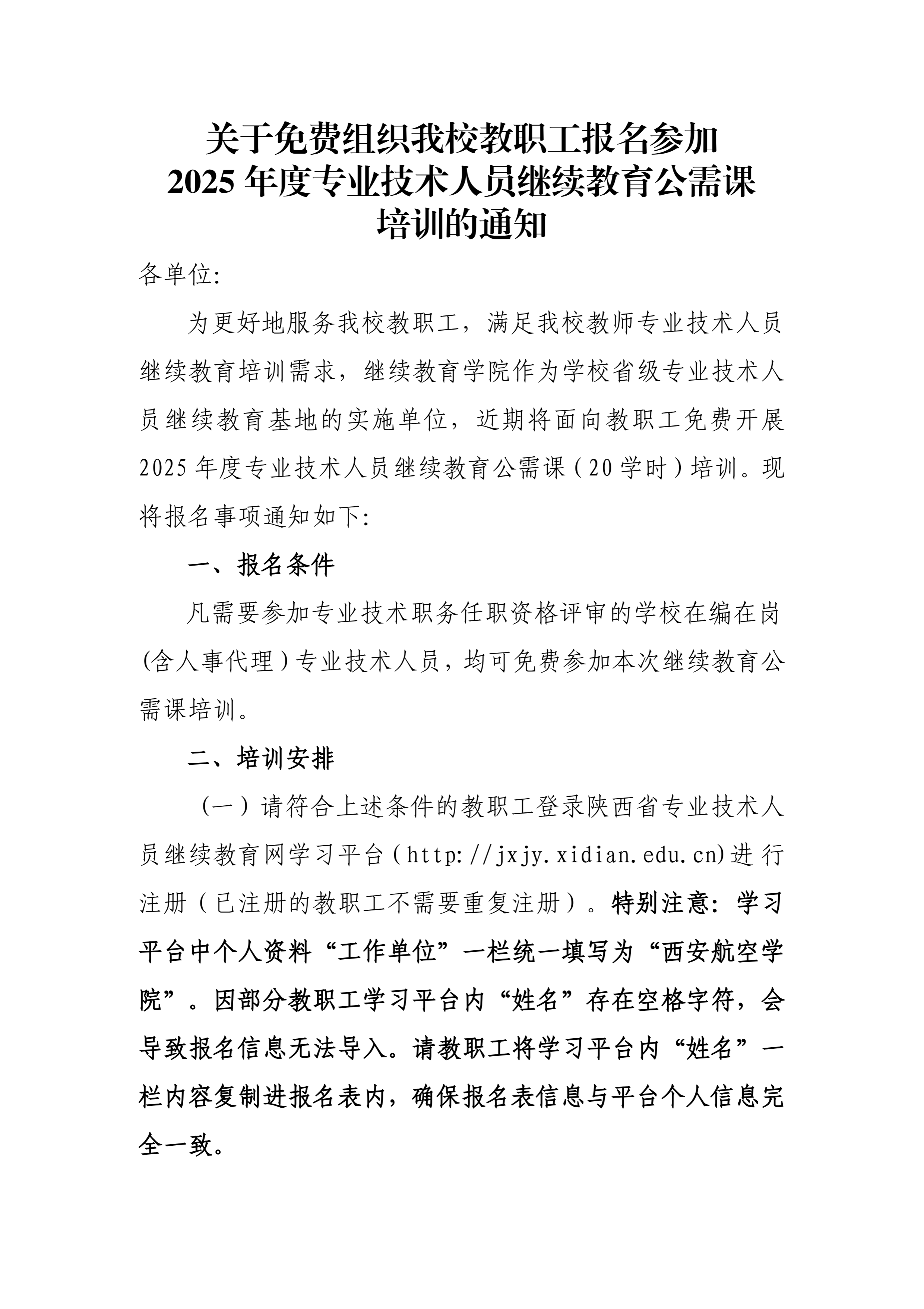关于免费组织今年会教职工报名参加2025年度专业技术人员继续教育公需课培训的通知