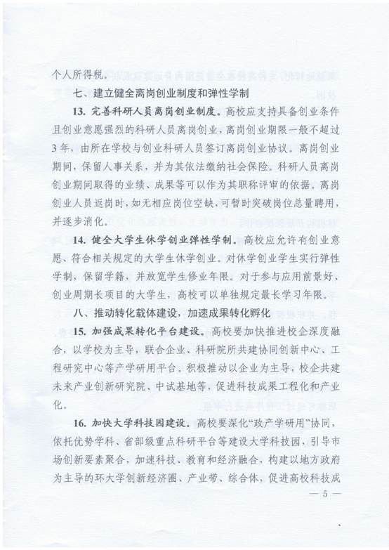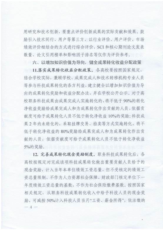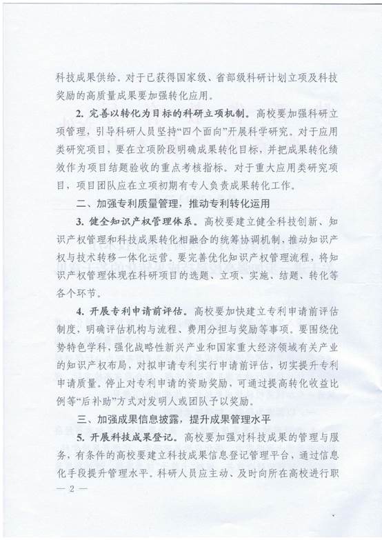 关于进一步加强高校科技成果转化的若干意见
