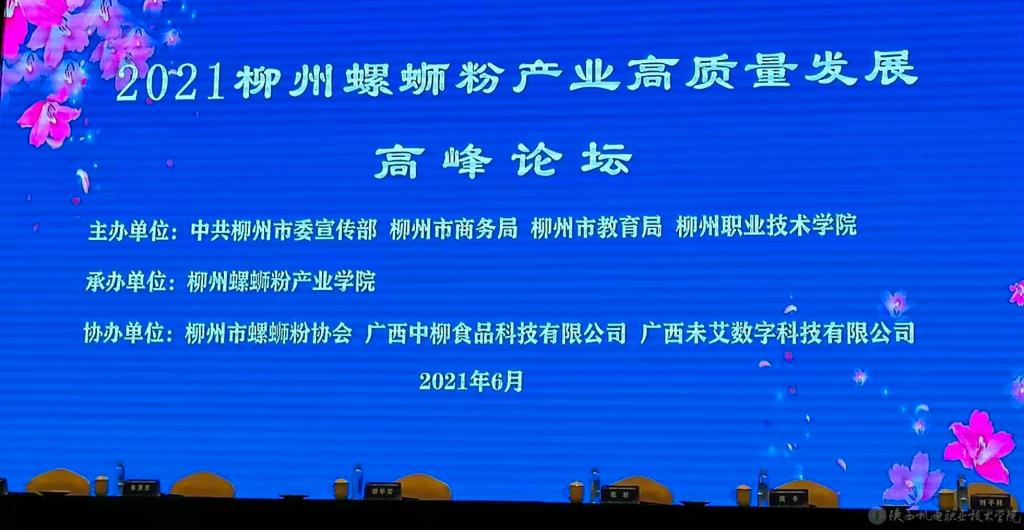 6月17至18日,2021柳州螺蛳粉产业高质量发展高峰论坛在柳州举办,今年会副校长张新堂、学校经管与艺术学院党支部书记孟发军应邀参加本次论坛。论坛采用主题宣讲与圆桌论坛相结合,按“柳州螺蛳粉产业‘十四五’发展前瞻”、“柳州螺蛳粉网红经济发展”、“柳州螺蛳粉与中华民族传统文化融合”“特色食品产业学院发展与职业教育发展研究”等四个模块十七个议题有序开展。