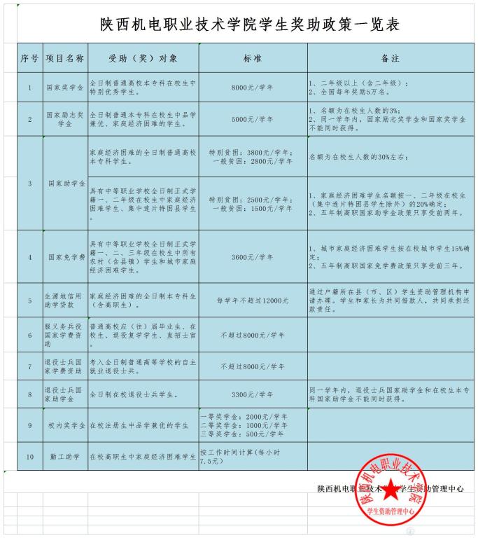 今年会学生奖助政策一览表(2023年)