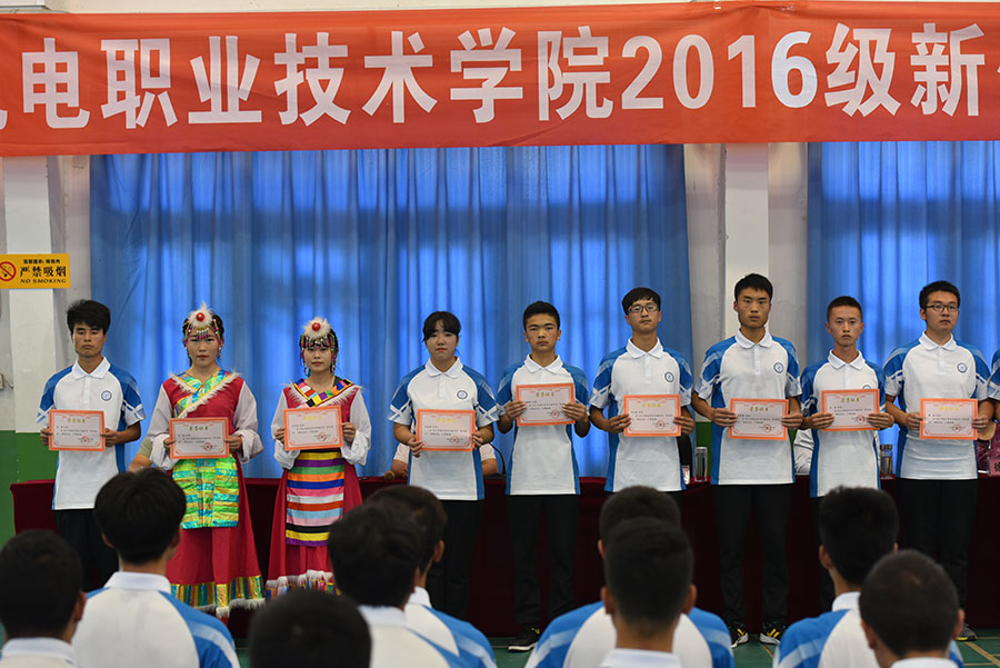 会上,朱云洁主任宣读了军训先进集体、军训优秀个人的表彰决定。16级电子技术班李怡恬同学代表所有参训学生发言,她表示在军训中体会到了同学间的友谊,感受到了领导、老师、教官的关心与关怀,今后将铭记校训,学会做人,努力学习。